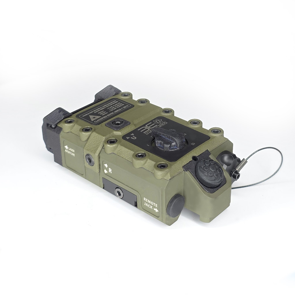 Tri-Witnessed – Visible Green laser, Infrared laser, VCSEL Illuminator, ODG 6061 Aluminum Housing, CRANE port (Parallel to primary activation button), Switched modes of operation.
